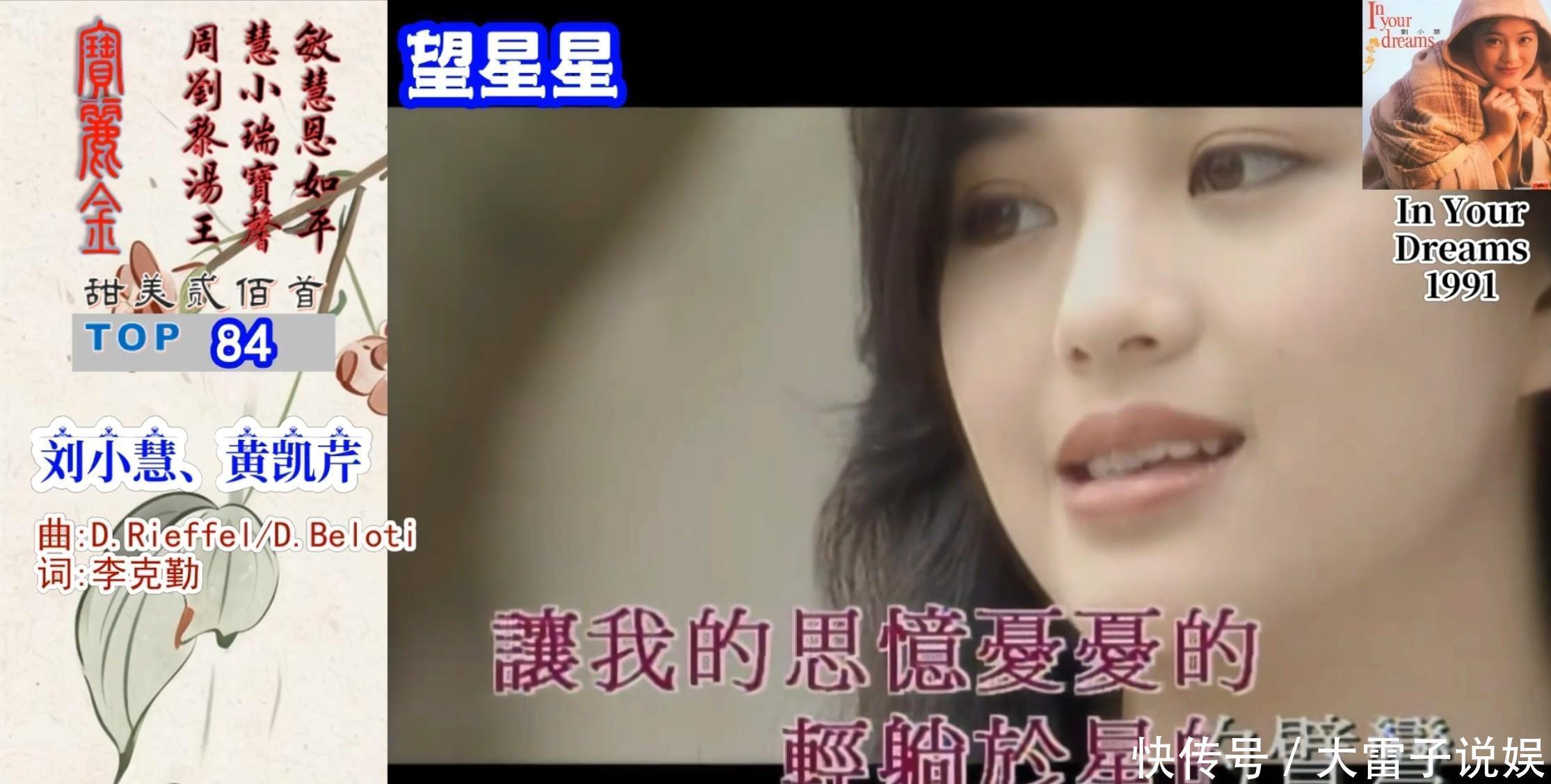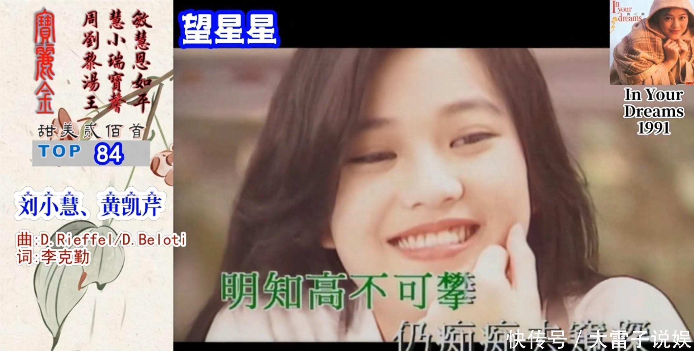 从这个角度来说,《望星星》是一首典型的校园歌曲。联系到当时她的另一首歌《梦幻星座情人》也充满着幻想元素,刘小慧以“学生情人”形象出道,从一开始就已经被定调了的。点击观看:宝丽金小花特辑辑(#81-90)周慧敏刘小慧黎瑞恩汤宝如王馨平年代所谓“宝丽金四小花”刘小慧、黎瑞恩、汤宝如、王馨平以及玉女派掌门人周慧敏等五位女歌手,制作《宝丽金小花甜美贰佰首》,精选了她们五人首经典作品进行排名。81 岁月的童话(周慧敏)82 你我开始很美(汤宝如)83 普通女人(王馨平)84 不知不觉想起你(黎瑞恩)85 望星星(刘小慧/黄凯芹)86 新相识 旧情人(周慧敏)87 危险期(汤宝如)88 梦游戏(王馨平)89 付出许多的爱情(周慧敏)90 听风的诗篇(刘小慧)#万能生活指南##刘小慧##黄凯芹#